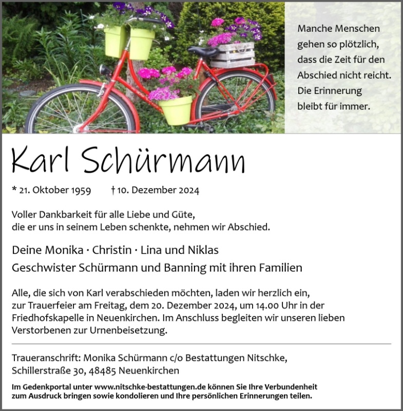 wir möchten unser tiefes Mitgefühl ausdrücken. Viel zu früh ist Karl von euch gegangen.