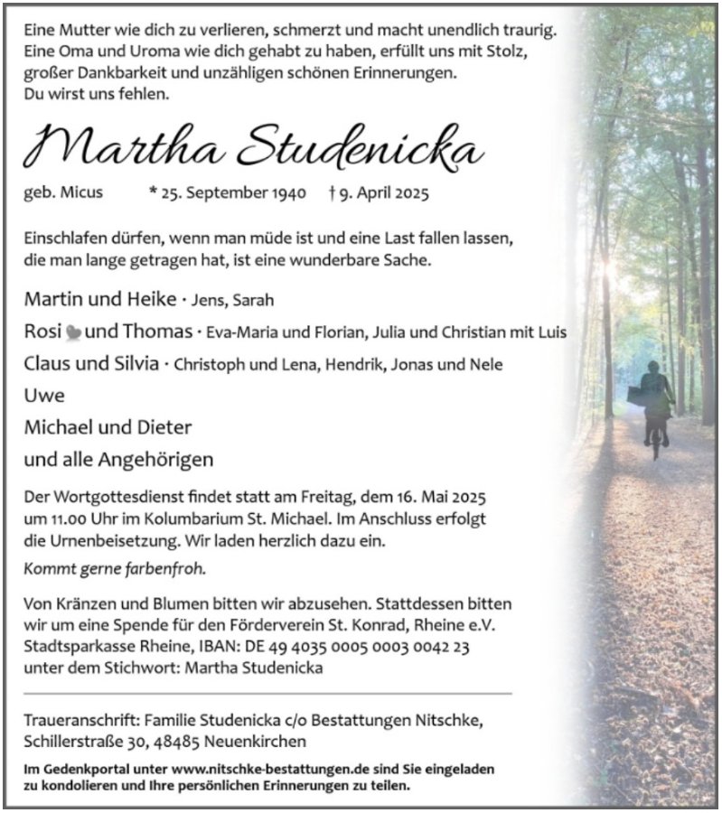 Martha Studenickagestorben am 9. April 2025